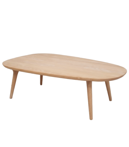The Oval Fox Table is a sleek, low-profile coffee table that embodies the purity and simplicity of Scandinavian design. Entirely constructed from light, natural wood, it features a seamless, warm finish that invites a cozy atmosphere. The table is defined by its generously sized, organic tabletop, which takes on a smooth, elongated oval shape.