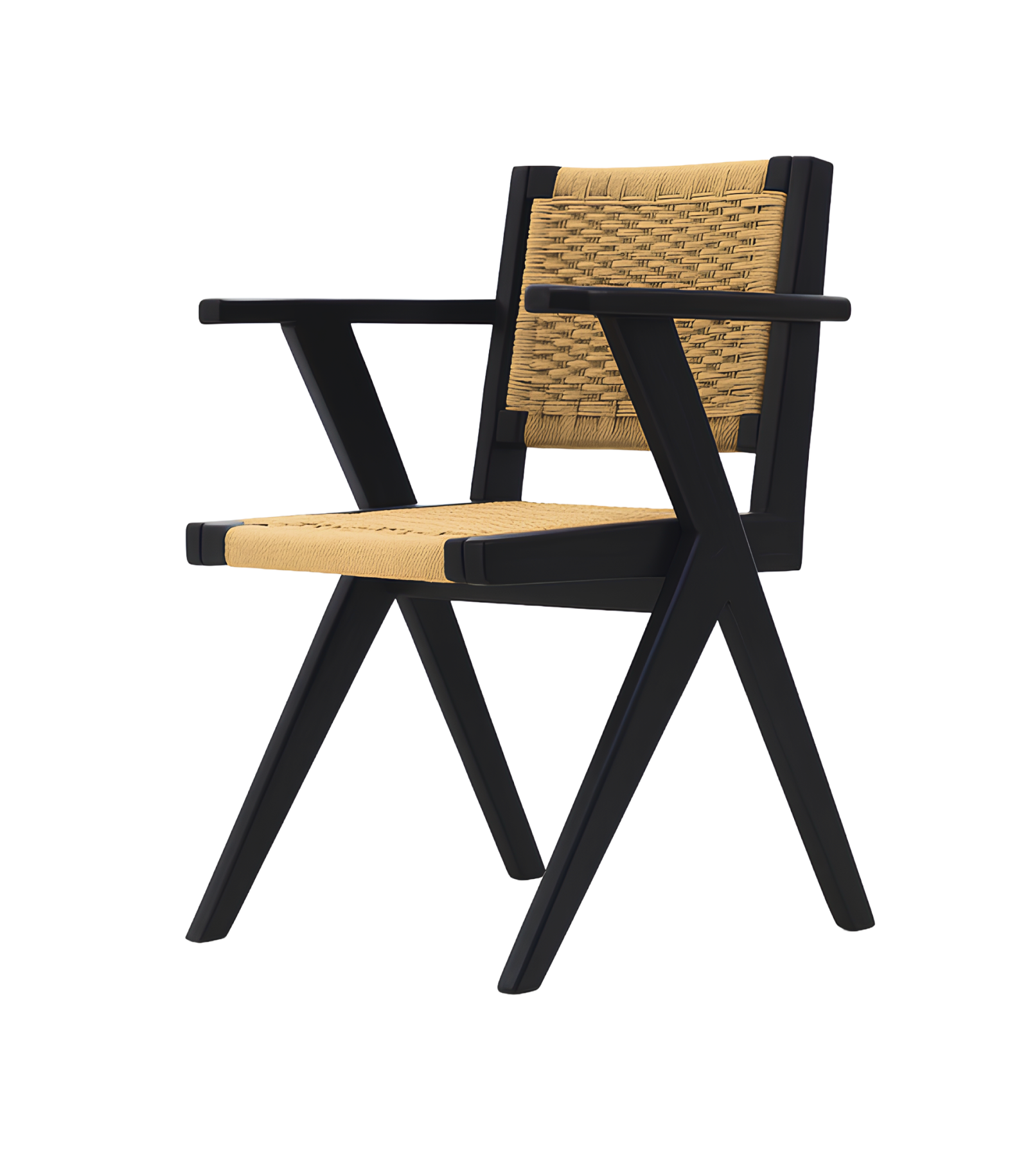 Jeannerette Loom chair features a modern, minimalist design with a matte black wood frame and a natural loom woven seat and backrest. The combination of black and natural fibers creates a warm and elegant feel, perfect for both contemporary and classic interiors.