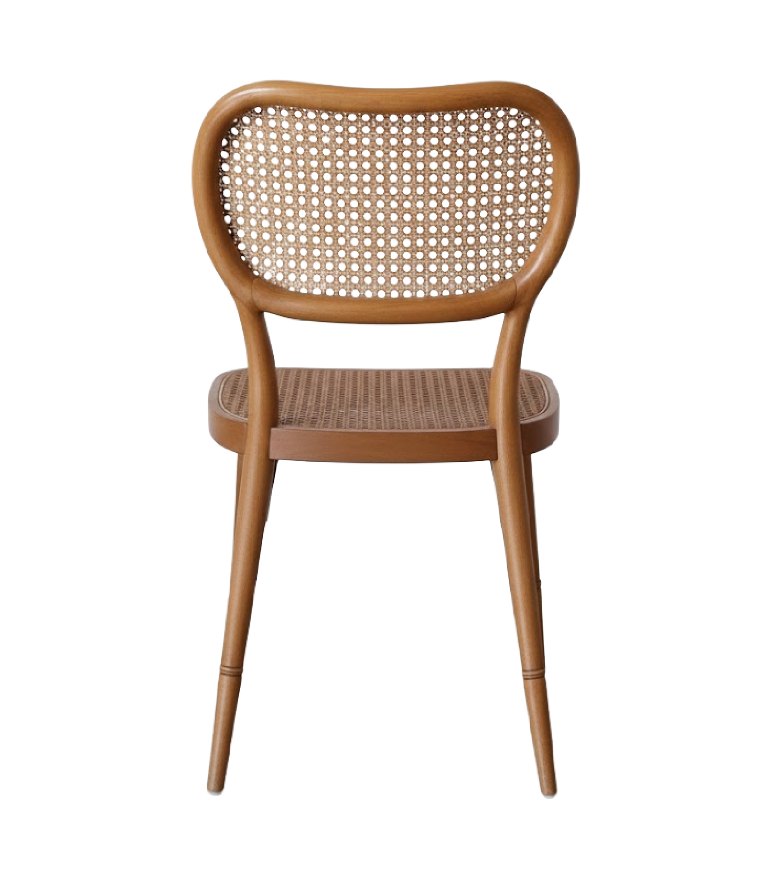 Mj Dinning chair features an elegant design with a natural wood frame and woven rattan seat and backrest. Its natural touch and ergonomic shape provide both comfort and warmth, perfect for a modern, natural, or Japandi dining room.