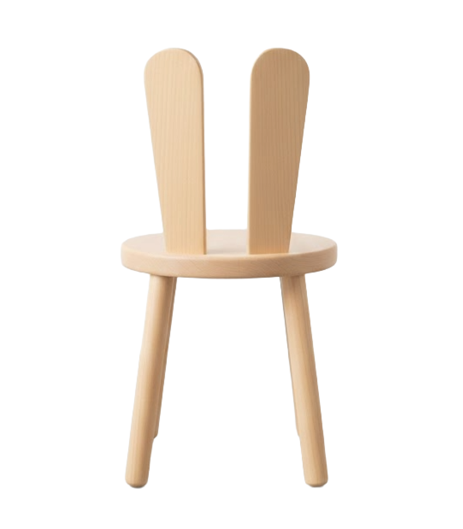 The Rabbit Chair is an adorable and minimalist children’s chair designed with a playful, yet sophisticated, aesthetic. The entire piece is constructed from light-colored, natural wood with a smooth, child-safe finish. It features a simple, round seat and four sturdy, straight legs, maintaining a robust structure suitable for children.