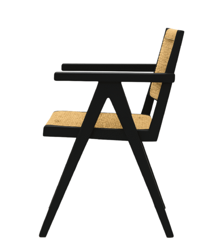 Mj Dinning chair features an elegant design with a natural wood frame and woven rattan seat and backrest. Its natural touch and ergonomic shape provide both comfort and warmth, perfect for a modern, natural, or Japandi dining room.